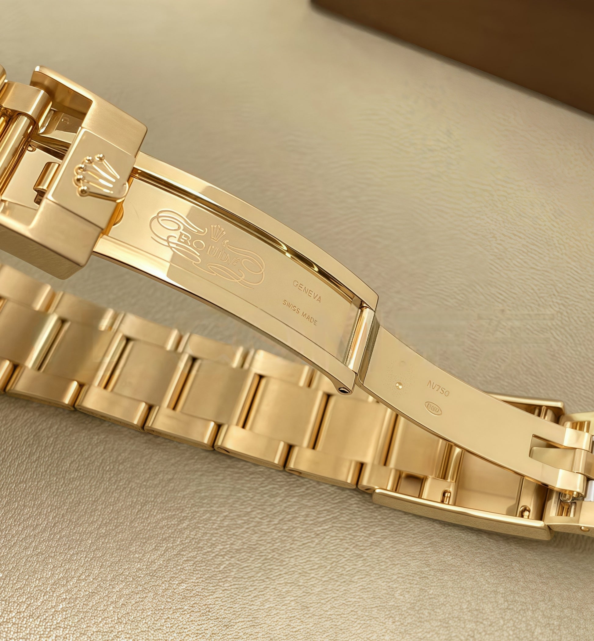 Oyster Bracelet: The three-piece link Oyster bracelet, entirely in 18K gold, combines robustness with ergonomic comfort. It features an Oysterclasp with the Easylink 5mm extension system, allowing seamless adjustments for a perfect fit512.